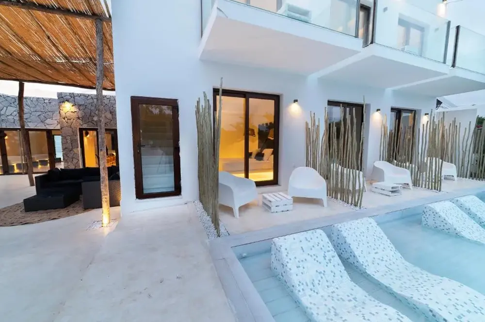 PAIISE Hotels se encuentra situado en Carretera sa Caleta km 3.5, 07830 Sant Francesc de s'Estany, España. Este establecimiento ofrece habitaciones no fumadoras, piscina al aire libre, WiFi gratis, estacionamiento gratuito y un excelente desayuno. La propiedad cuenta con servicios como bar y está convenientemente ubicada cerca de varios puntos interesantes. Entre las atracciones cercanas destacan Es nou nou playa a 1.3 km, Aeropuerto de Ibiza a 750 metros, Tantra Beach Club Ibiza a 5 km y Cala Jondal Beach a 2.4 km. Además, lugares como Sa Talaia están a 7 kilómetros y Gambrino a 2.1 km. PAIISE Hotels proporciona una experiencia cómoda y accesible para visitantes que buscan hospedaje cercano a zonas turísticas importantes.